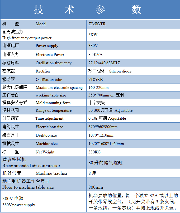 型 號(hào): ZJ-5K-TR 醫(yī)療袋焊接高頻機(jī)