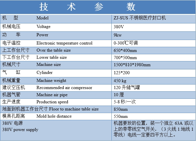 機 型:ZJ-SUS不銹鋼醫(yī)療封口機